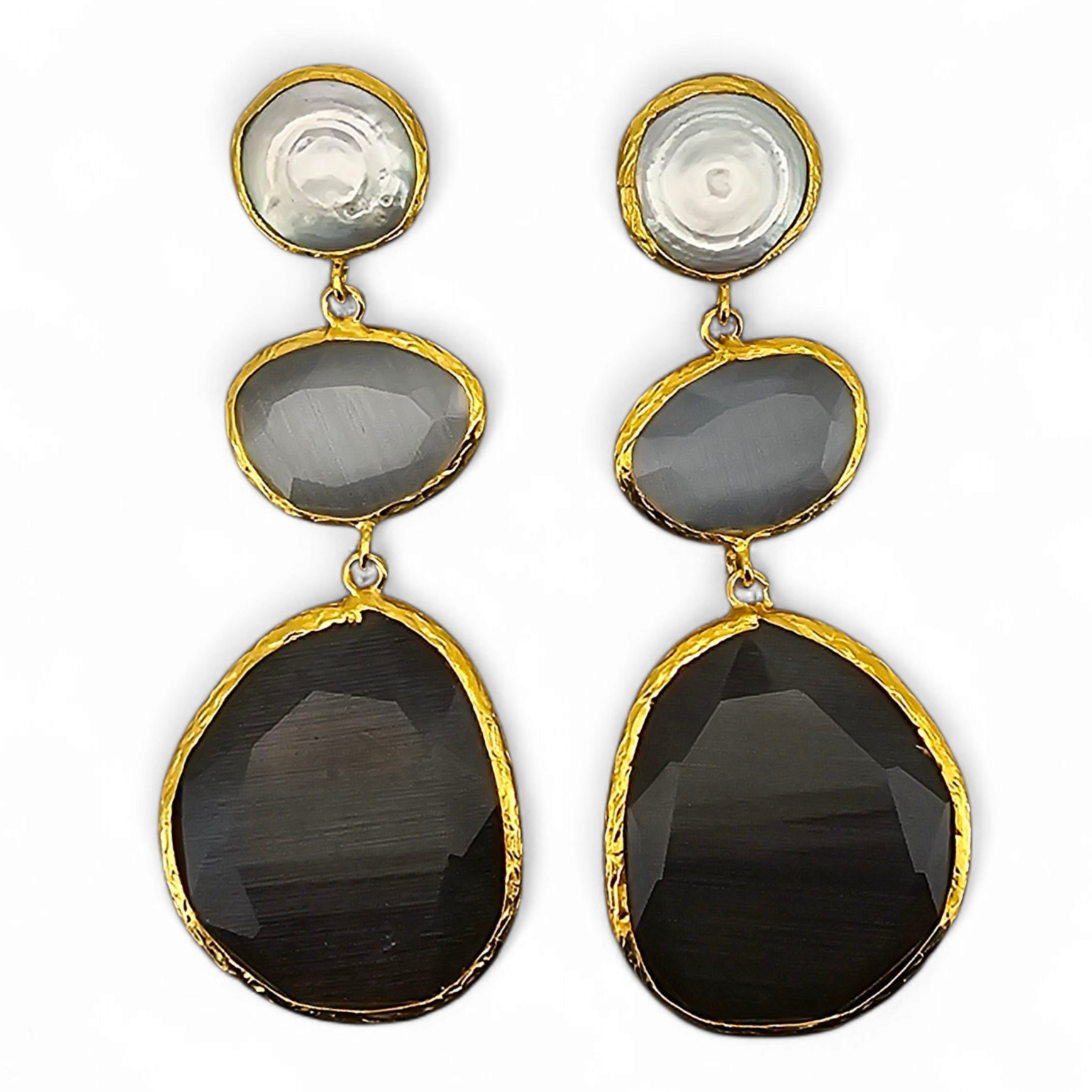 A refined trio of pearl, white, and black cateye stones balanced, luminous, and quietly bold.