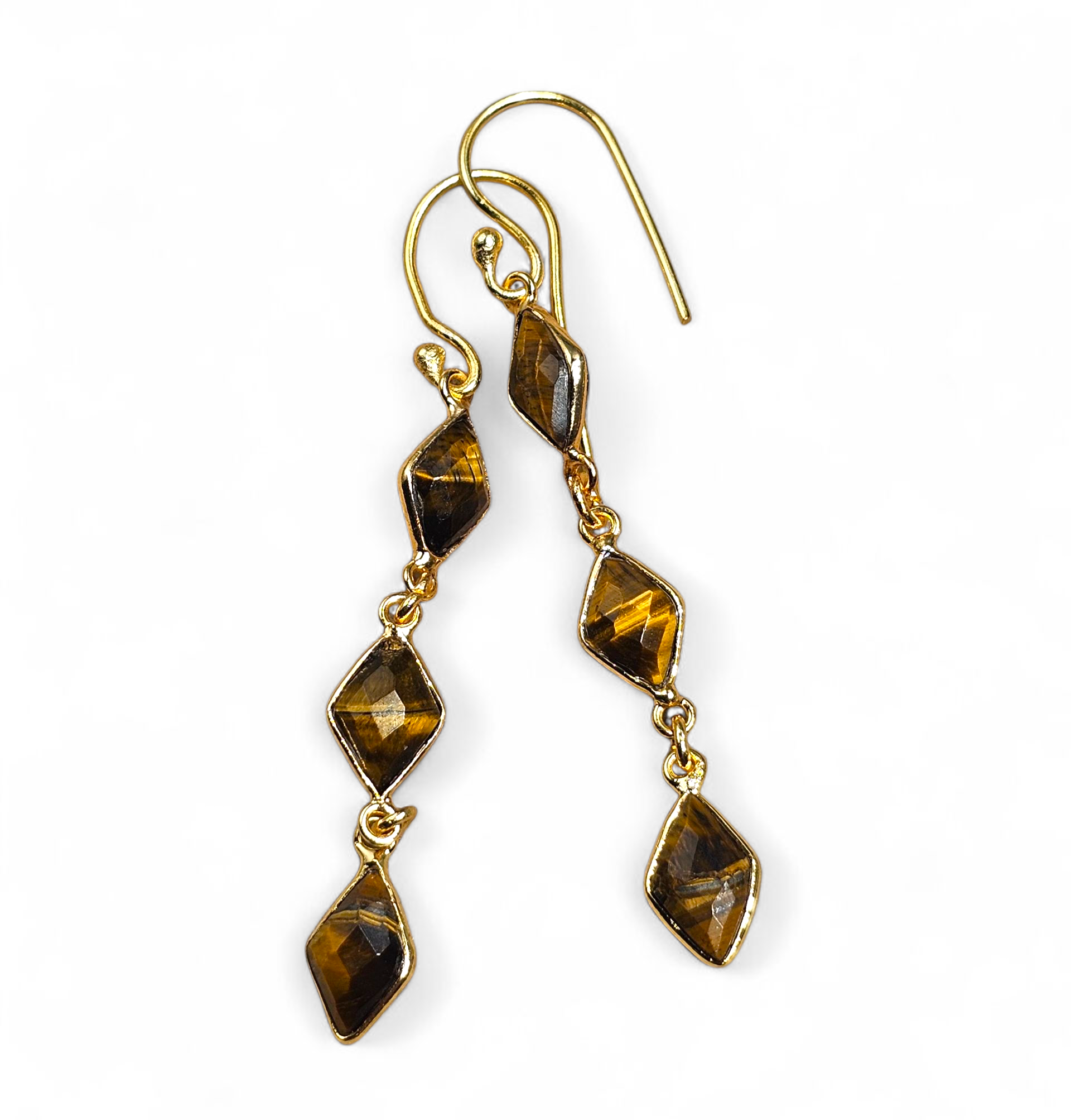 Material: Gold-plated brass with natural tiger eye stones