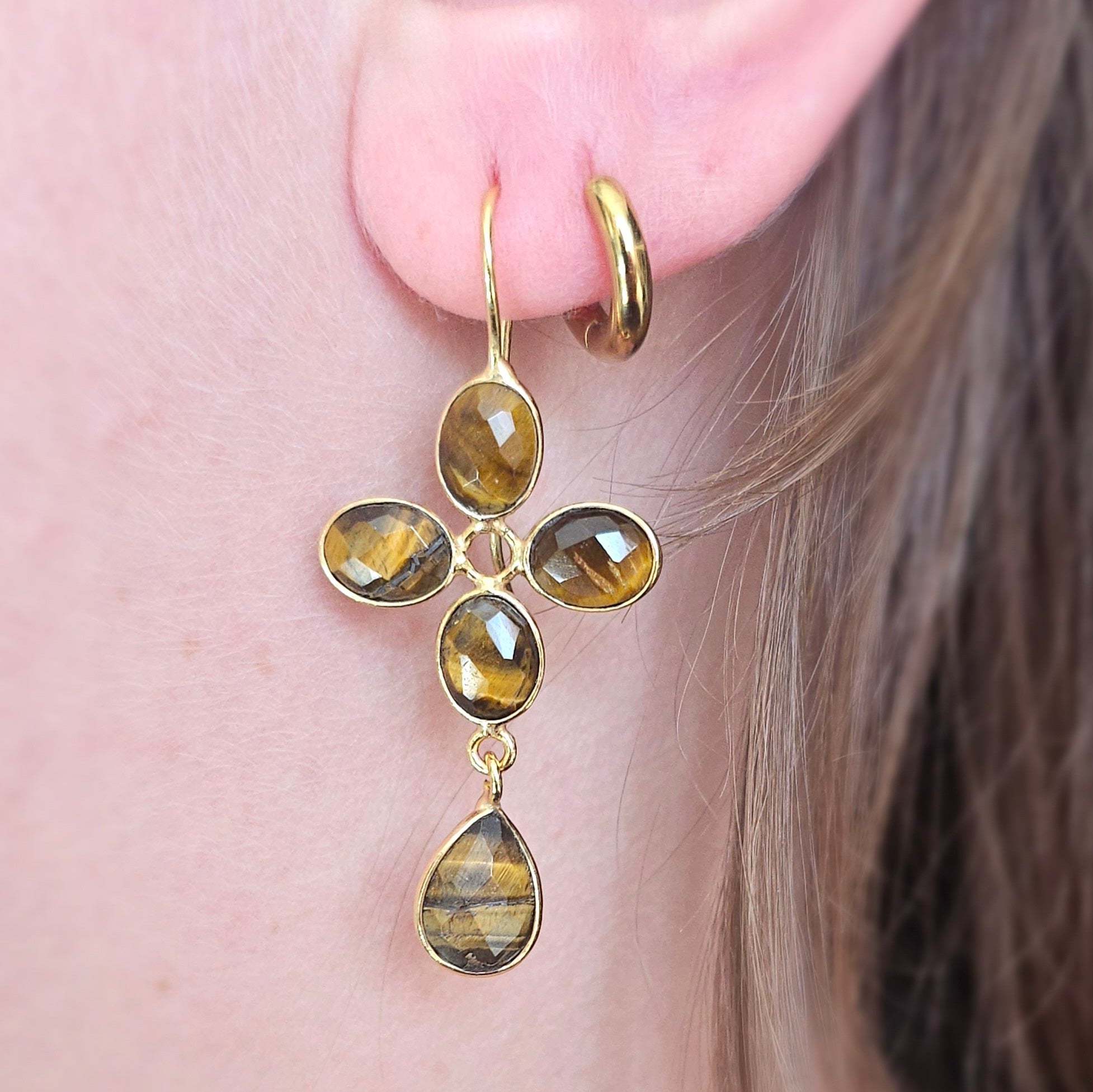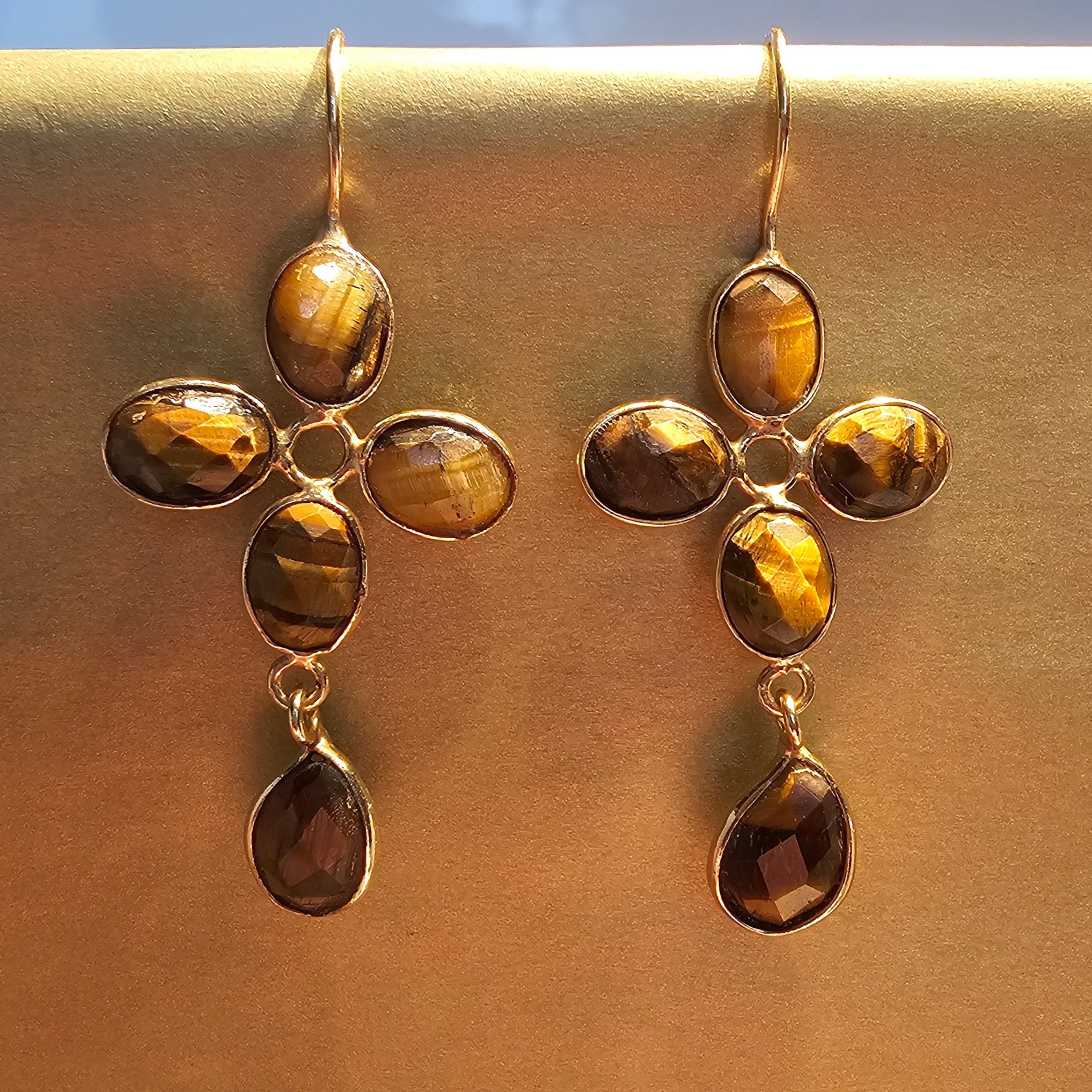 Delicate handcrafted earrings with five natural tiger eye stones. Measuring 6 cm and weighing only 2 grams, they’re beautifully lightweight subtle movement, natural glow.