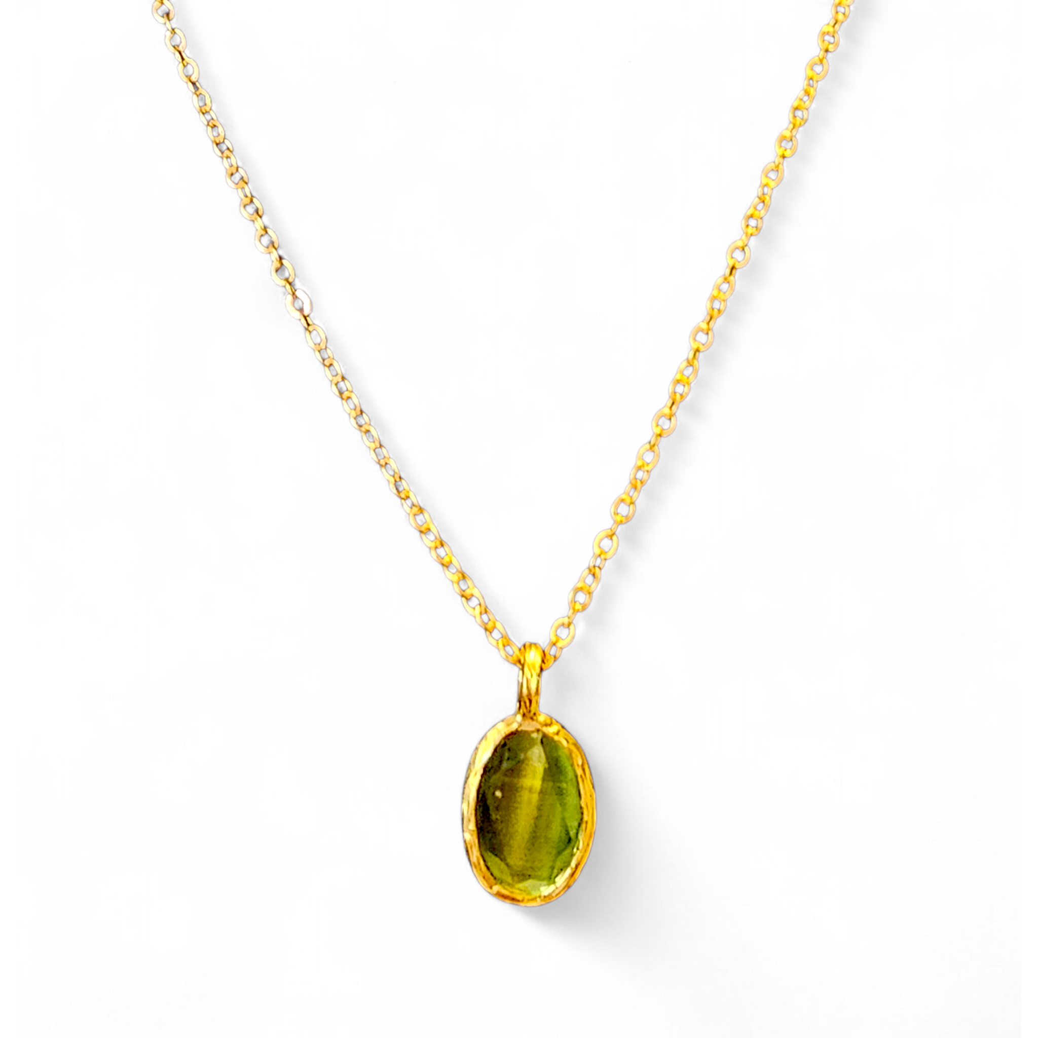 Fine adjustable necklace (42–45 cm) with an olive-green cateye stone.
