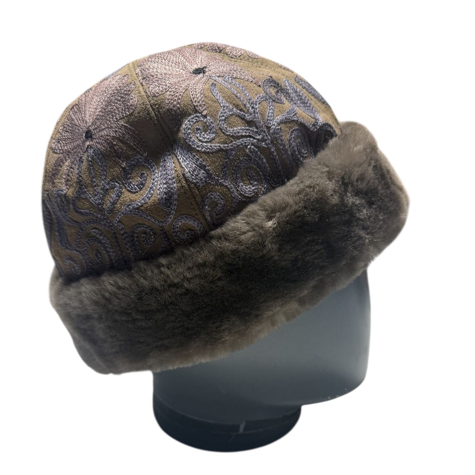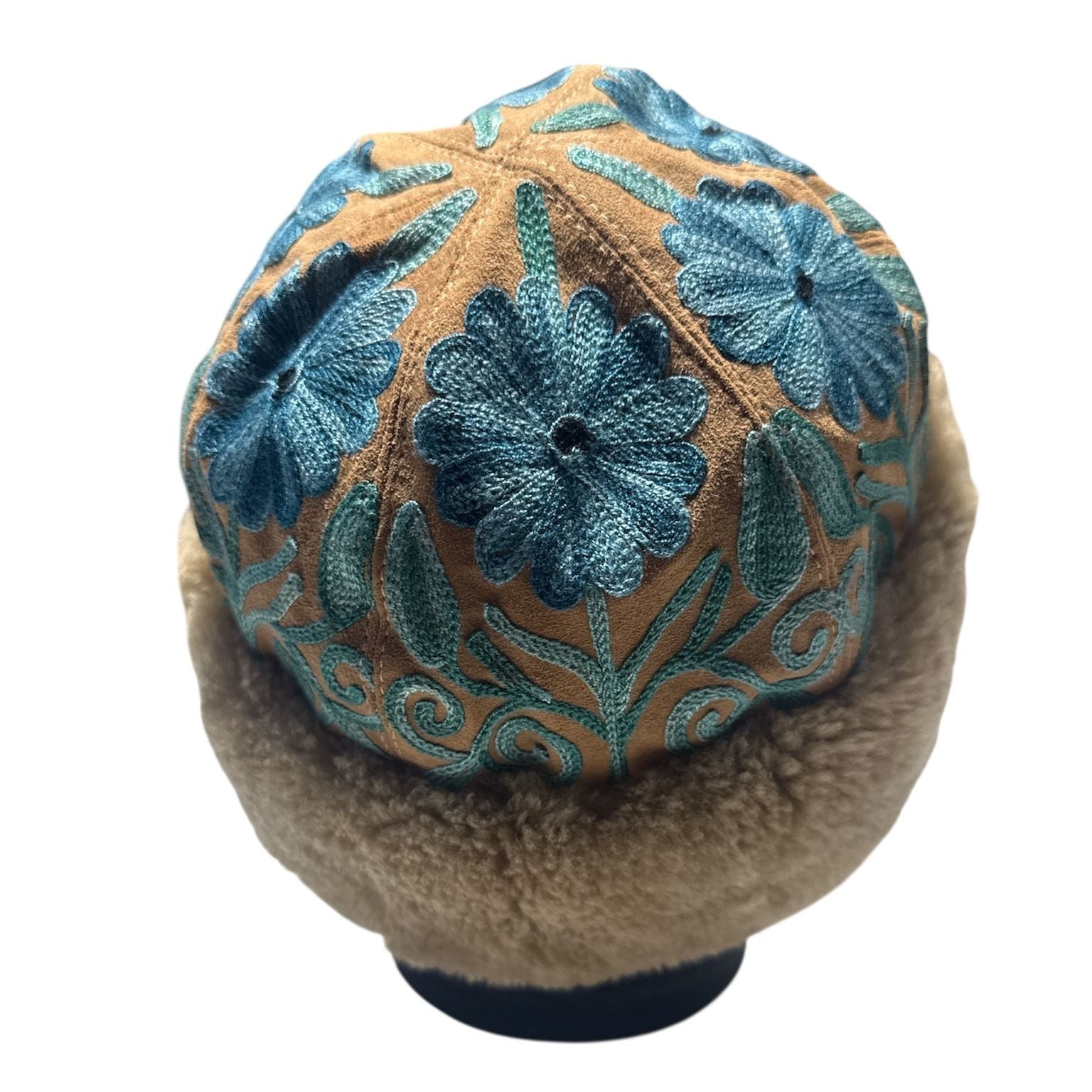 Handcrafted suede winter hat lined with soft shearling for warmth and comfort. Each color has its own unique inner circumference, ensuring a natural, artisanal fit. Made from sheep suede, shearling, silk, and viscose warm, breathable, and beautifully timeless.