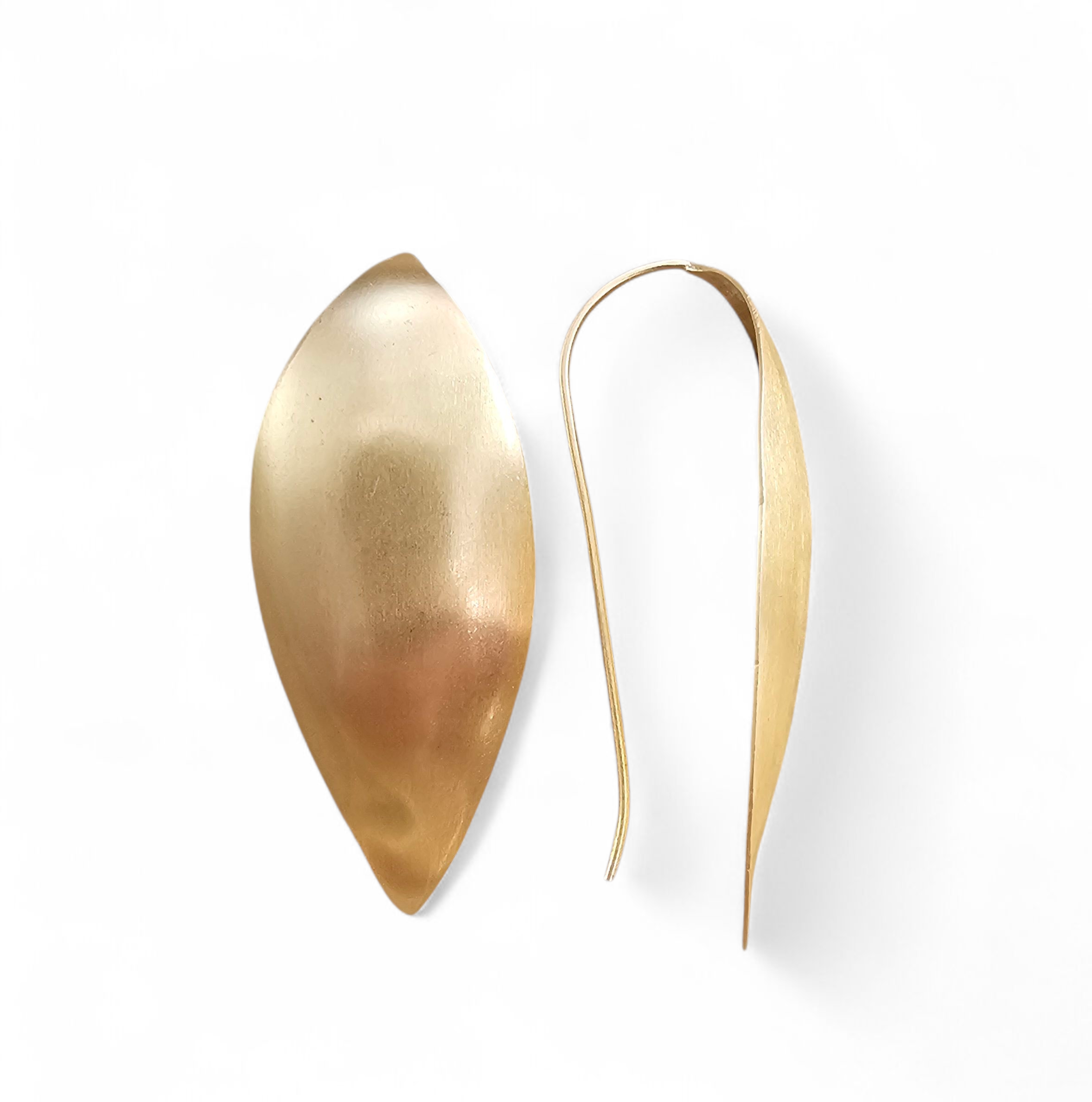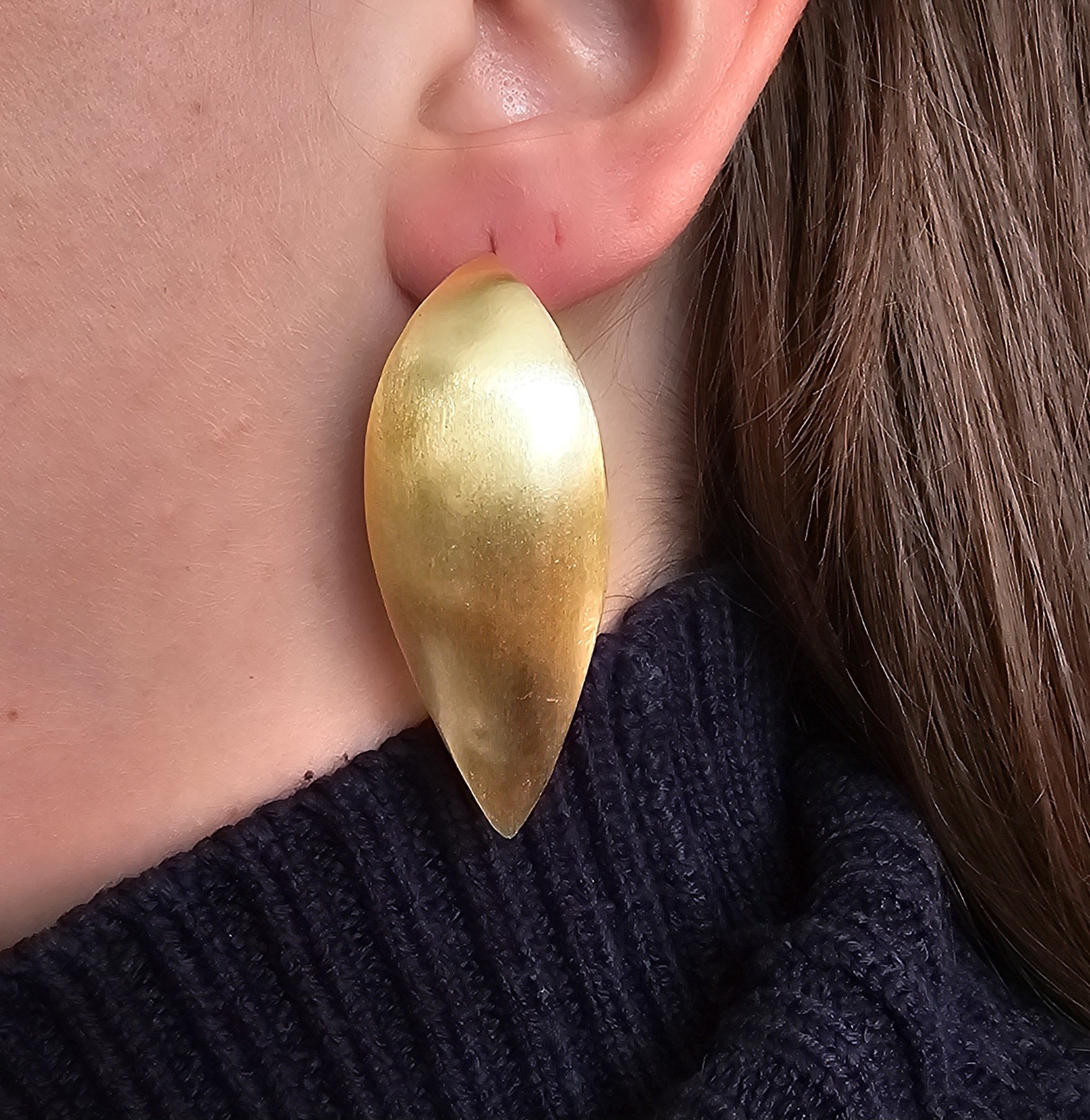 Sculptural pointed studs crafted from silver-plated brass with a golden lacquer finish. Despite their bold shape, they weigh only 4.2 grams super-light, like a feather.