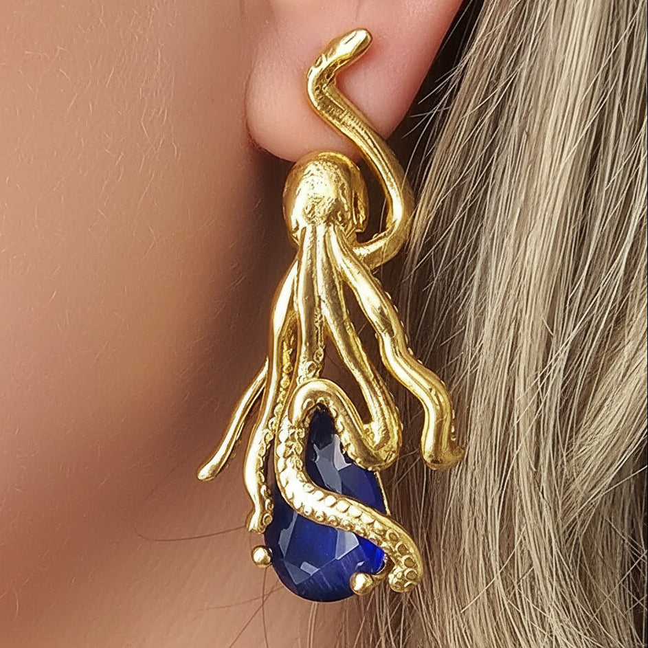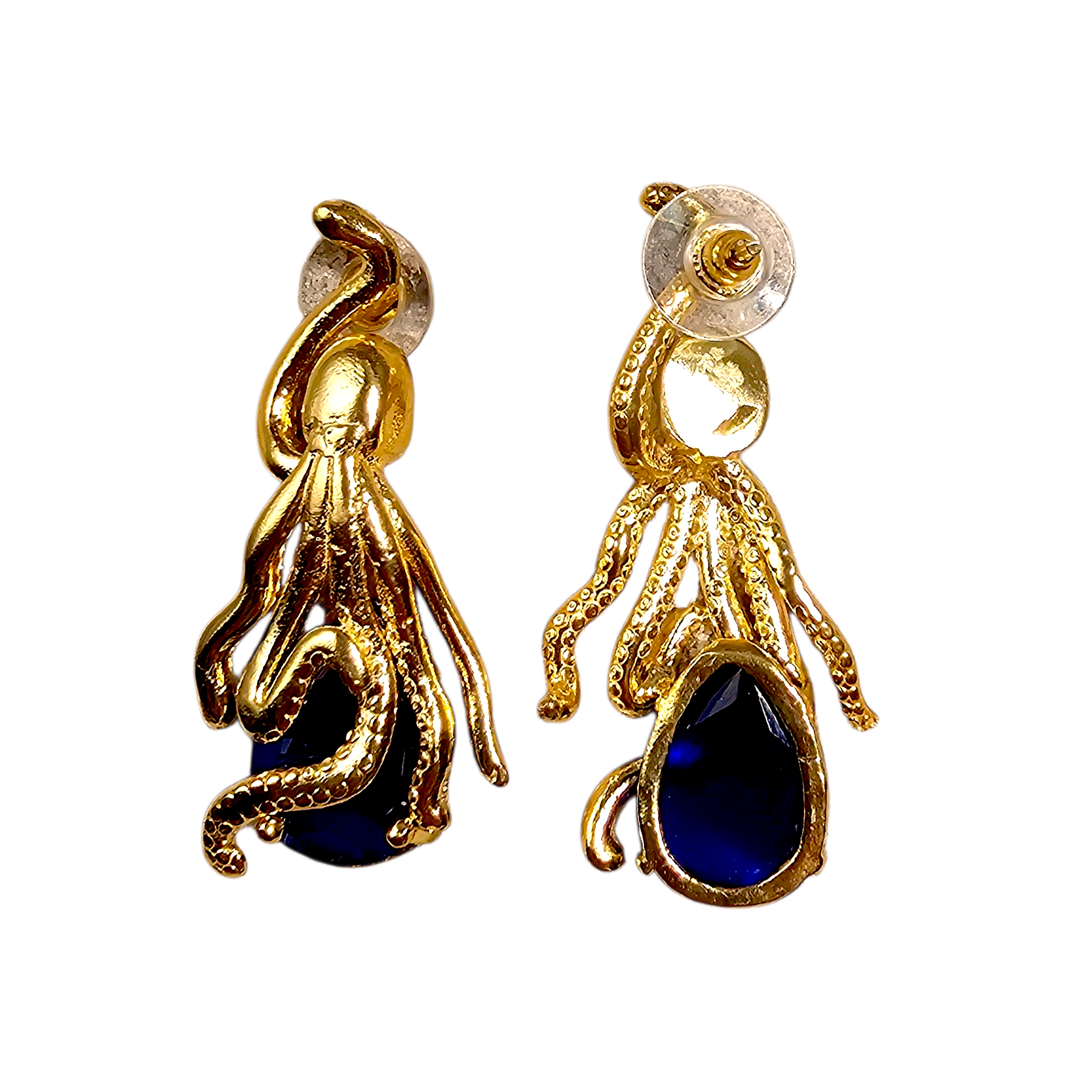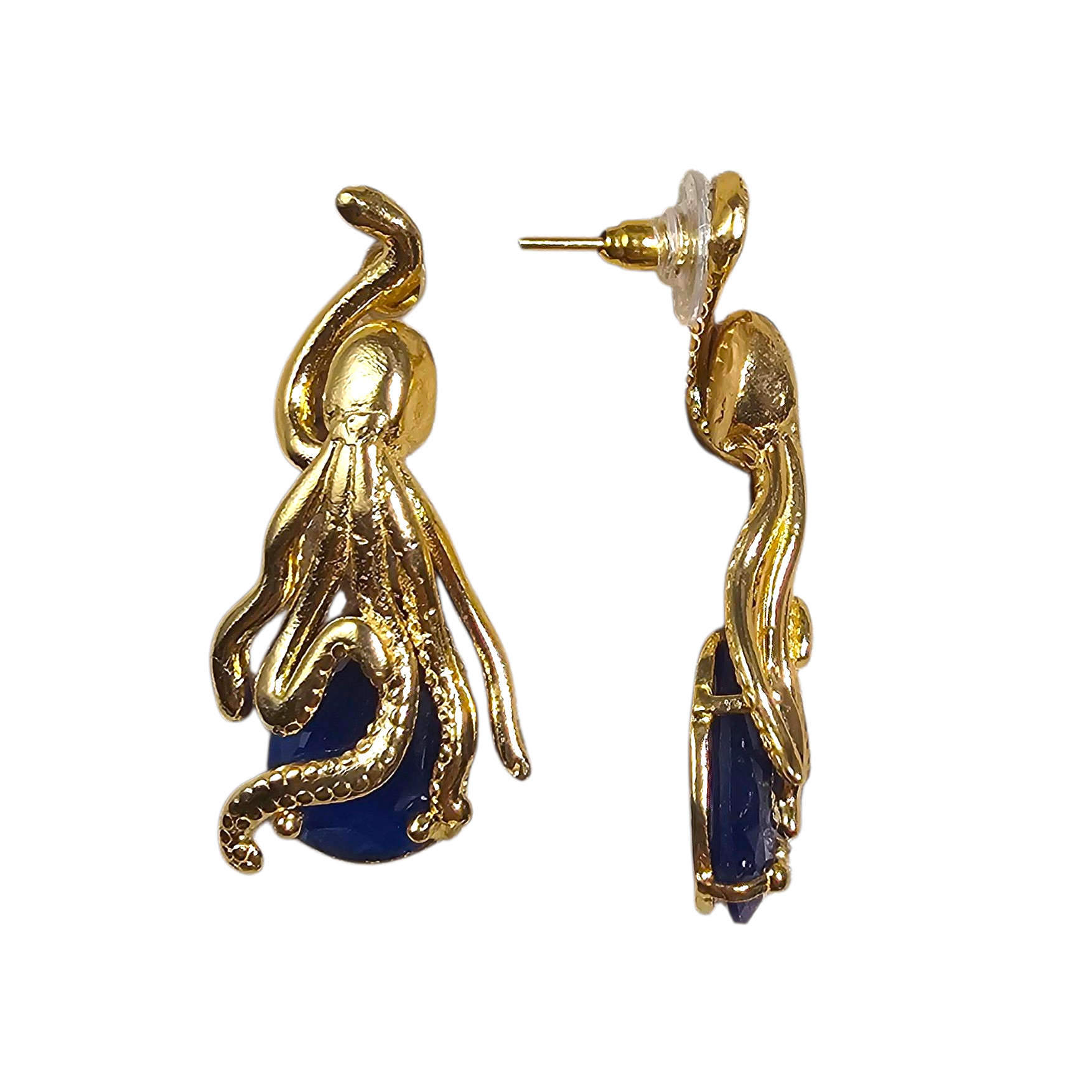 Bold octopus-inspired stud earrings with deep-toned cat eye stones, crafted from 24k gold-plated brass. At 4.5 cm and 8.7 grams, they offer a stronger, more sculptural presence the masculine counterpart to our Octo Petite.